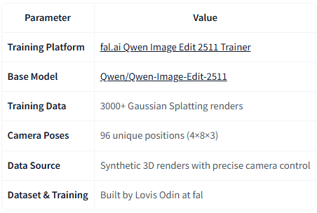 96 camera positions • Trained on 3000+ Gaussian Splatting renders • Built with fal.ai