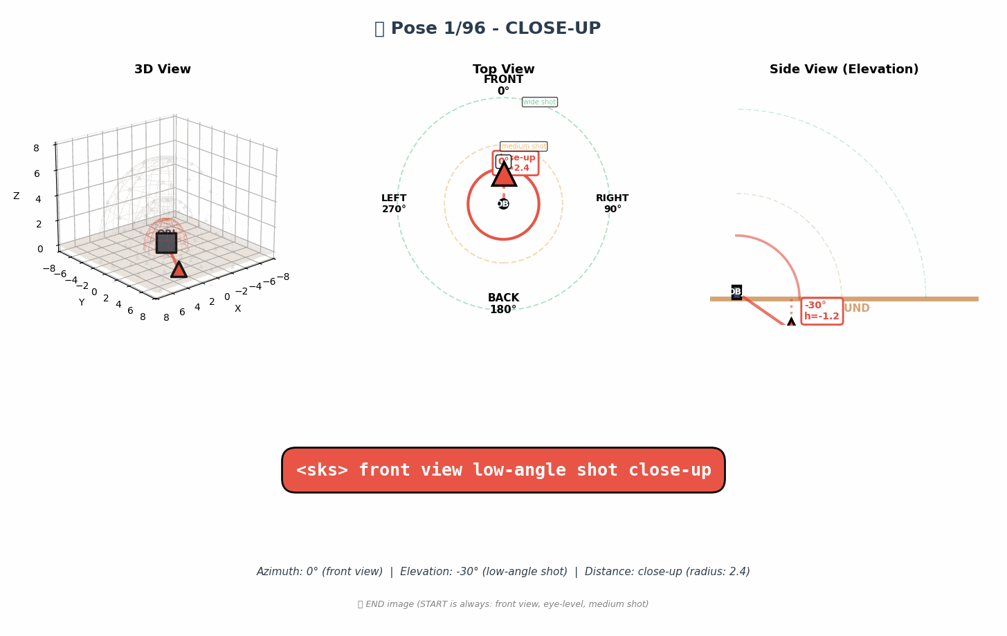 4 Elevations × 8 Azimuths × 3 Distances = 96 Poses